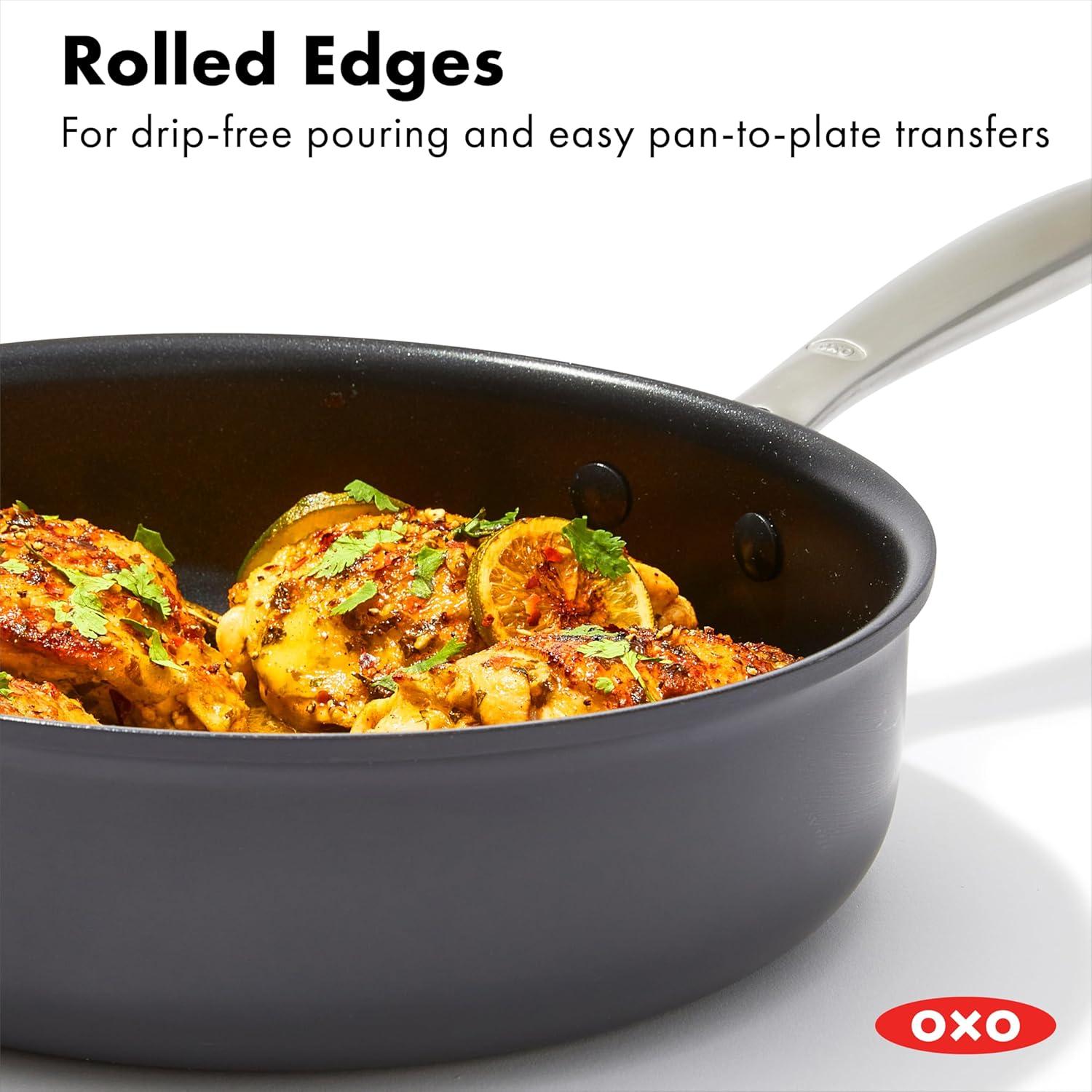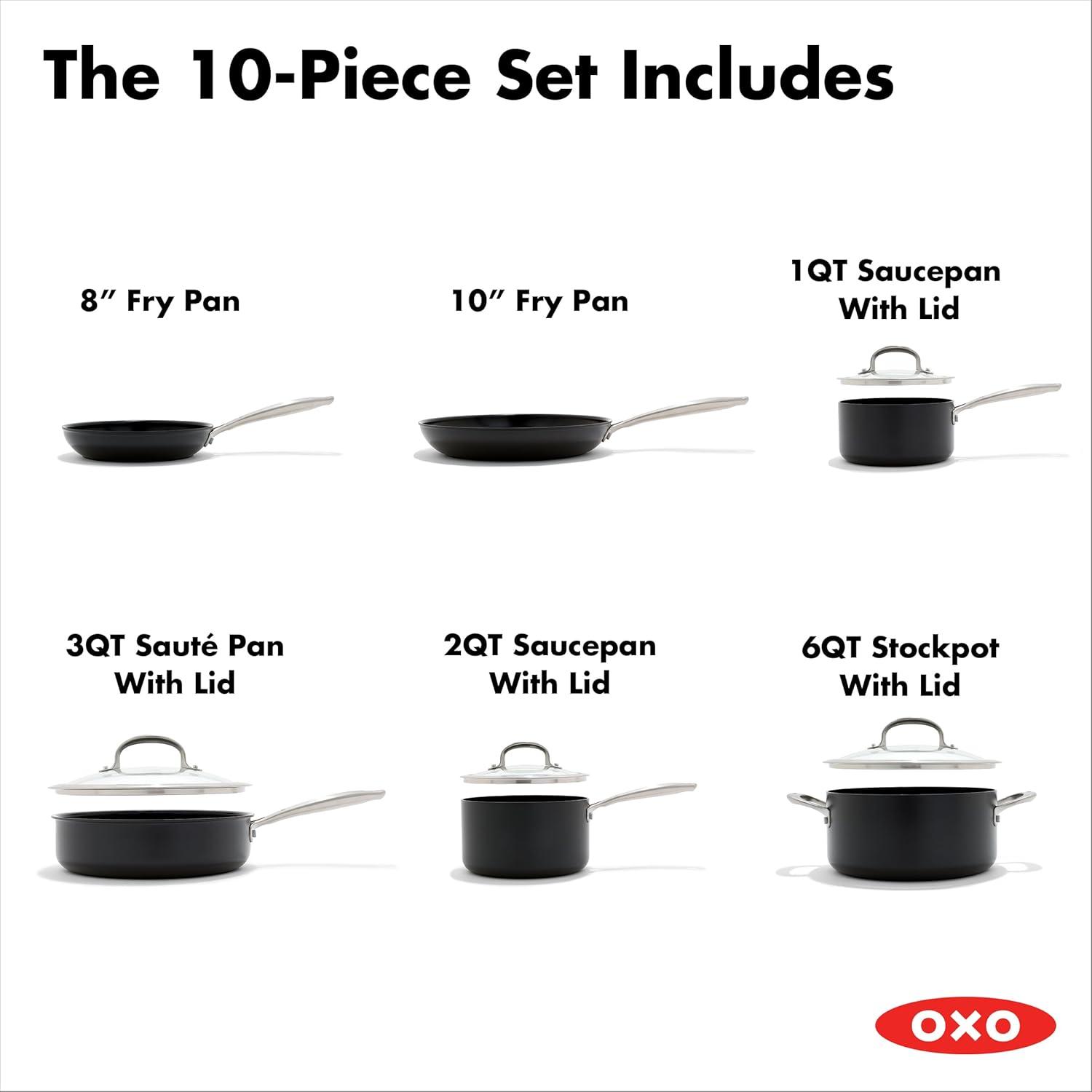 OXO Enhanced 10 Piece Cookware Pots & Pans Set, PFAS-Free Ceramic Nonstick, Durable Hard Anodized Cookware, Scratch Resistant, Stainless Steel Handle, Good Grips, Dishwasher & Oven Safe, Black(Black)