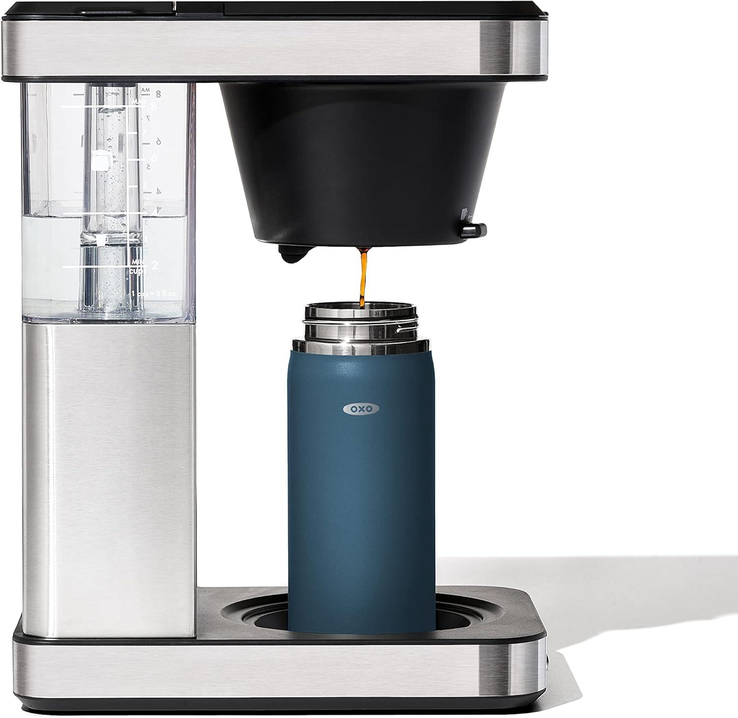 Whether your first sip is at the kitchen counter, in the car or on a walk with the dog, with the OXO Thermal Mug with SimplyClean™ Lid, you can enjoy your favorite brew without missing a beat. Professional-grade stainless steel allows the flavor of your drink to shine through, while the BetterTemp™ vacuum insulation keeps liquids hot for 12 hours or cold for 24 hours. The SimplyClean™ lid twists open for sipping and fully disassembles for thorough cleaning. A sweatproof coating provides a secure grip no matter where the day takes you. This travel mug is sized to fit most coffee makers and cup holders for easy brewing and stowing. Dishwasher safe.