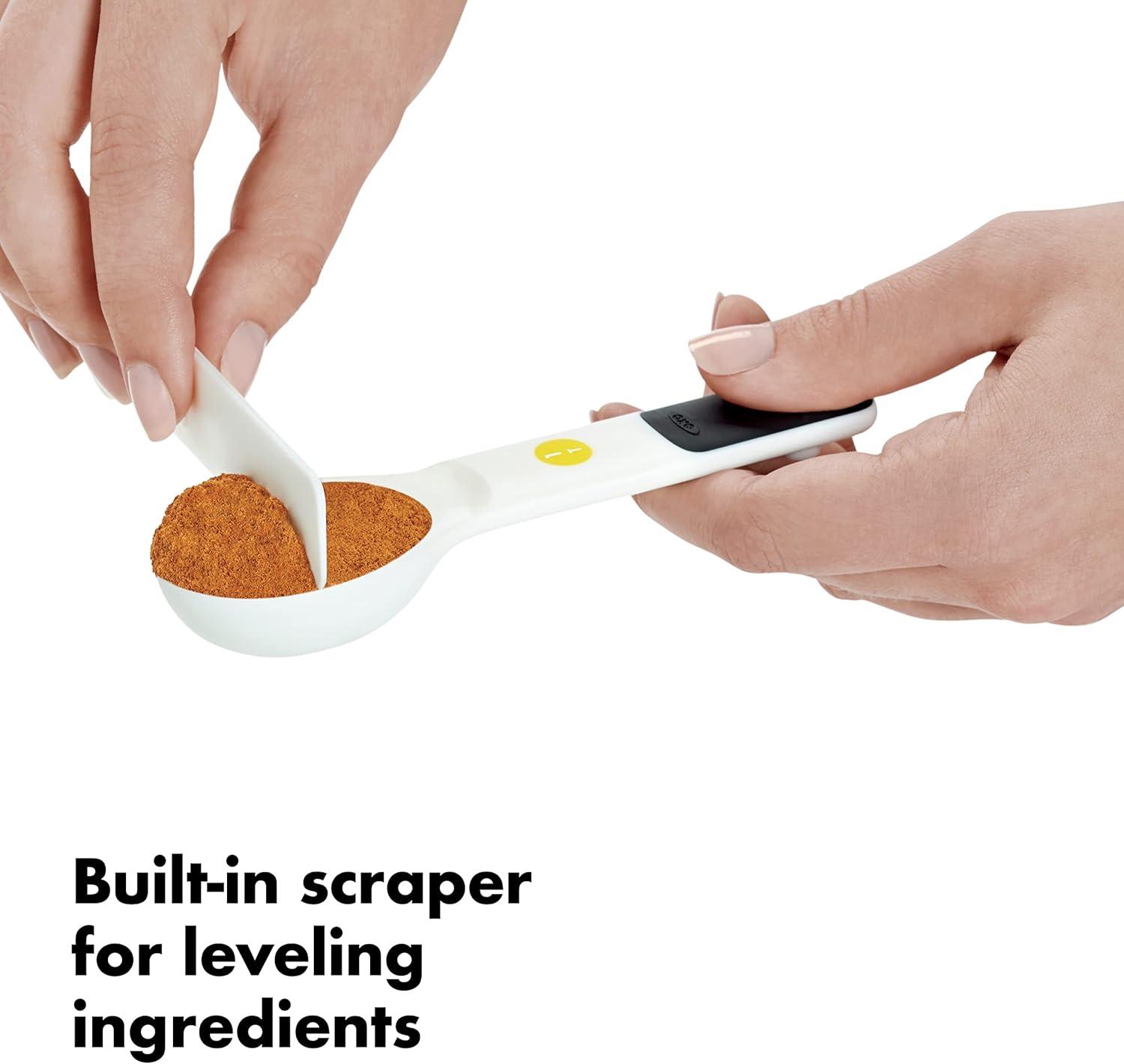 OXO Good Grips 6-Piece Plastic Measuring Spoons with Scraper- White(White)