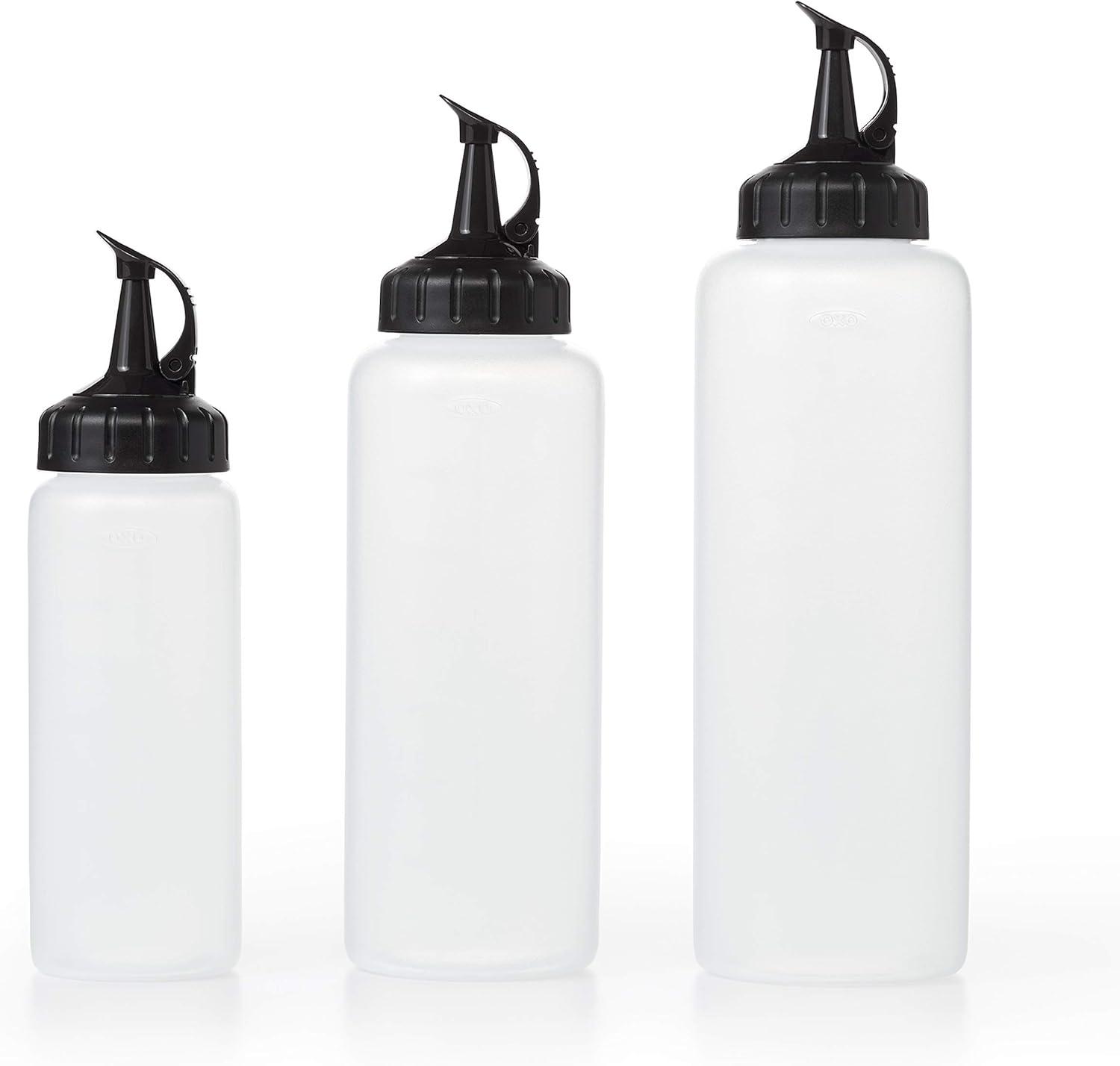Whether you’re adding oil to a pan, drizzling chocolate on a cheesecake, or squeezing ketchup on a burger, the OXO good grips chef’s squeeze bottles provide one-handed precision. Whether you need a thin tip for precision or a wide tip for thicker dressings and sauces, we’ve got you (and your squeeze bottle! ) covered with interchangeable lids, Each with a unique, attached cap.
