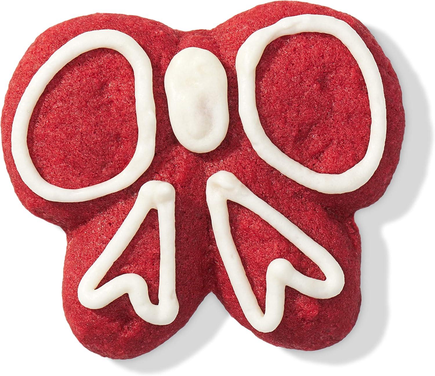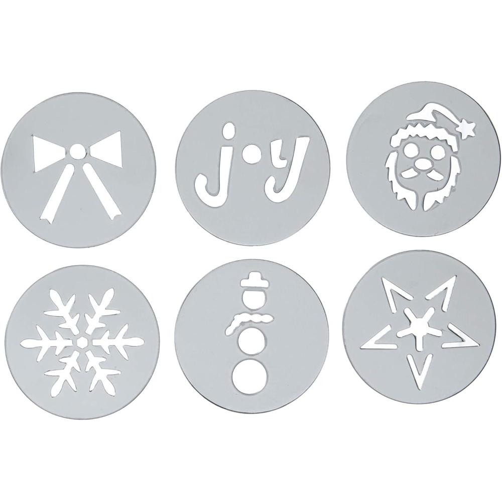 Set includes 6 festive disks for holiday inspired cookies, including: Snowman, Bow, Star, Snowflake, and Santa
