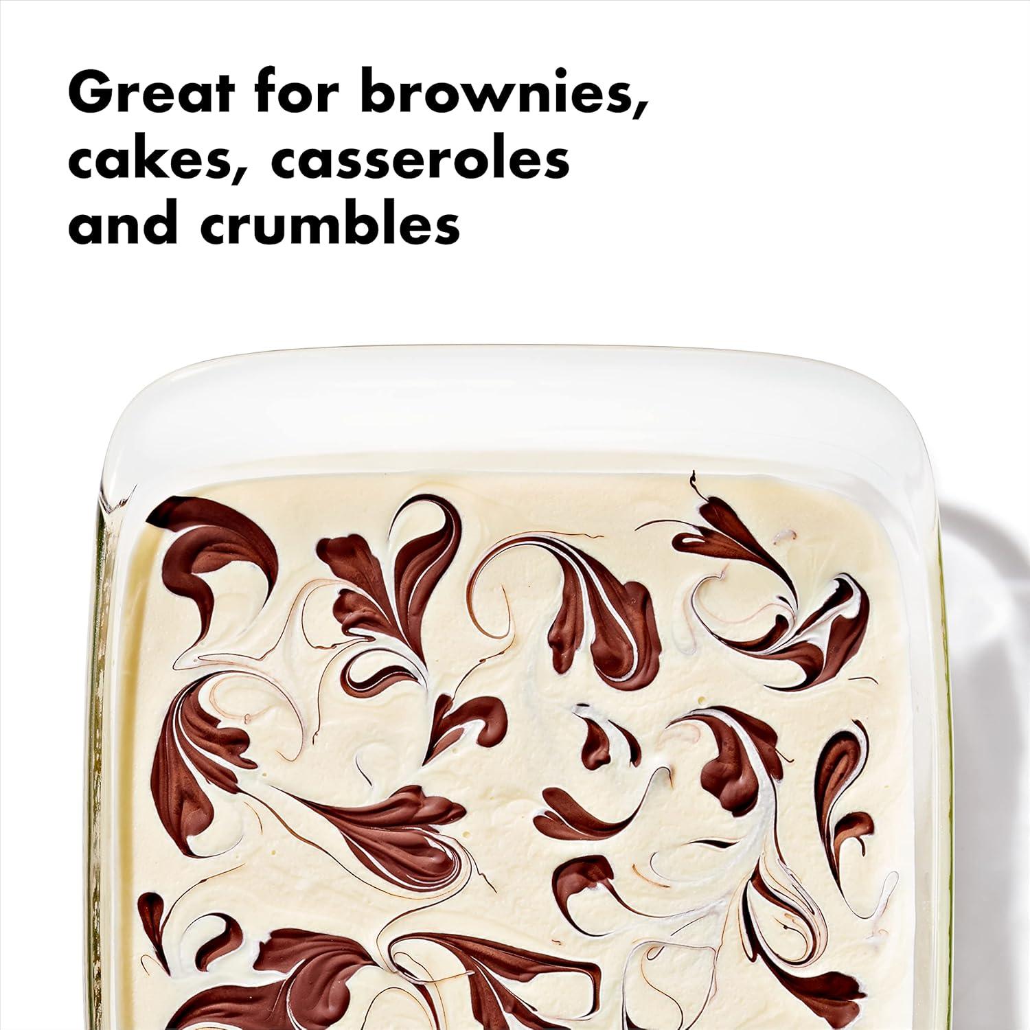 Made of borosilicate glass that can withstand extreme temperature changes, the OXO Good Grips Glass 1.6 Qt Loaf Baking Dish with Lid lets you move your food directly from the freezer or fridge to the oven or microwave without cracking or shattering. Generous handles make for safe and easy transporting. A clean, elegant design means you can take the 6-in by 10-in Dish from the oven directly to the table. Ideal for making breads, pound cakes and more. Microwave safe, oven safe, freezer safe, dishwasher safe, BPA free and PVC free.