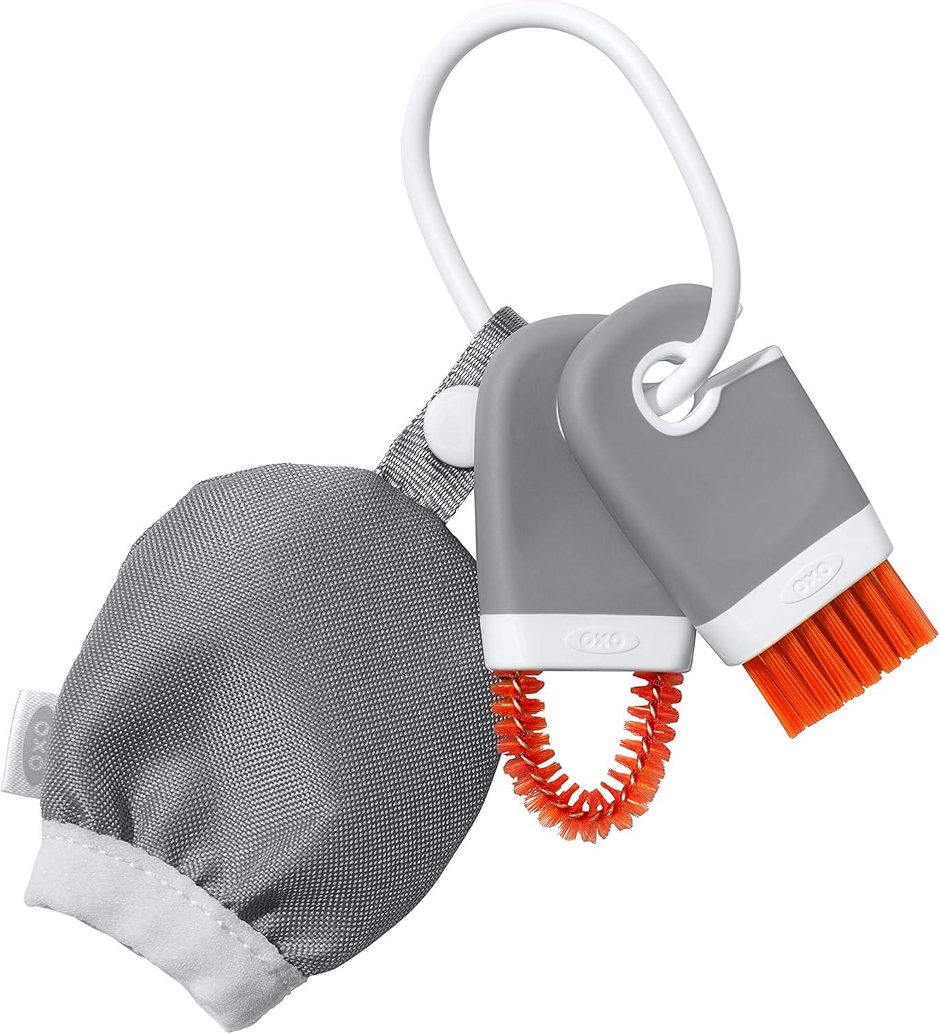 The OXO good grips keyboard & screen deep cleaning set is your all-in-one solution for keeping your screens and keyboards as clean as can be. The bristled brush scrubs away tough messes, The microfiber cloth clears away fingerprints With a swipe, and the loop brush gets deep down between keys to pull dust and dirt you didn't even know was hiding in there. All three tools store on a convenient storage ring, for easy access at your desk or on the go.