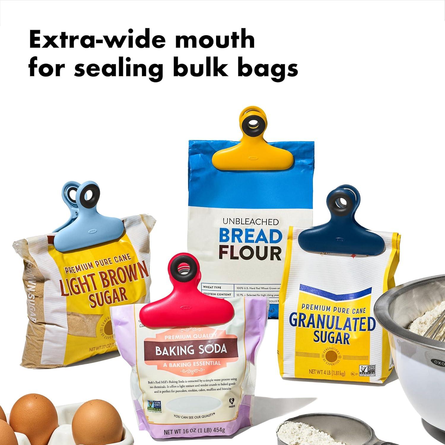 Sturdy grip securely seals bulkier bags to help keep kitchen staples fresh