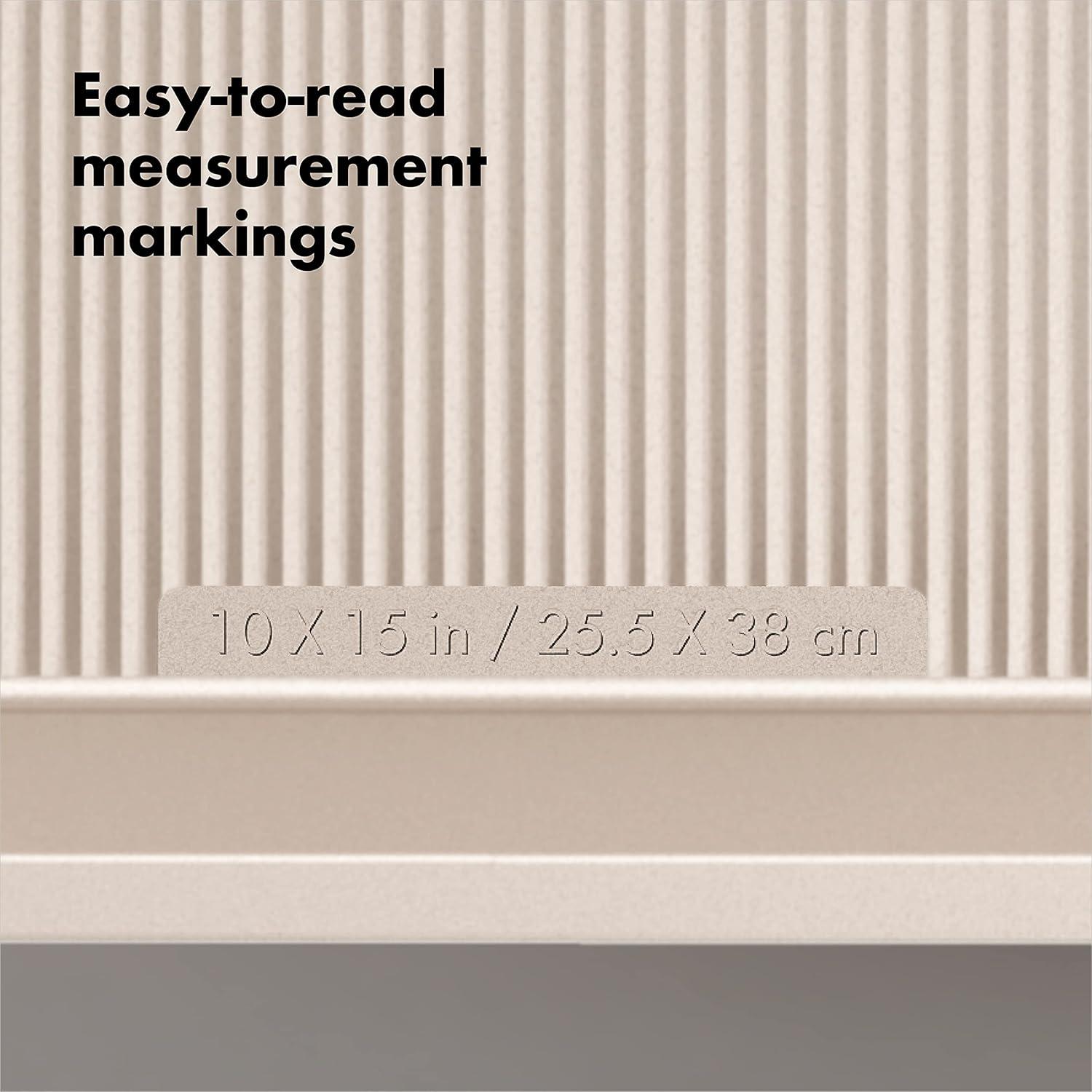 Micro textured pattern ensures even baking by minimizing surface contact and promoting airflow