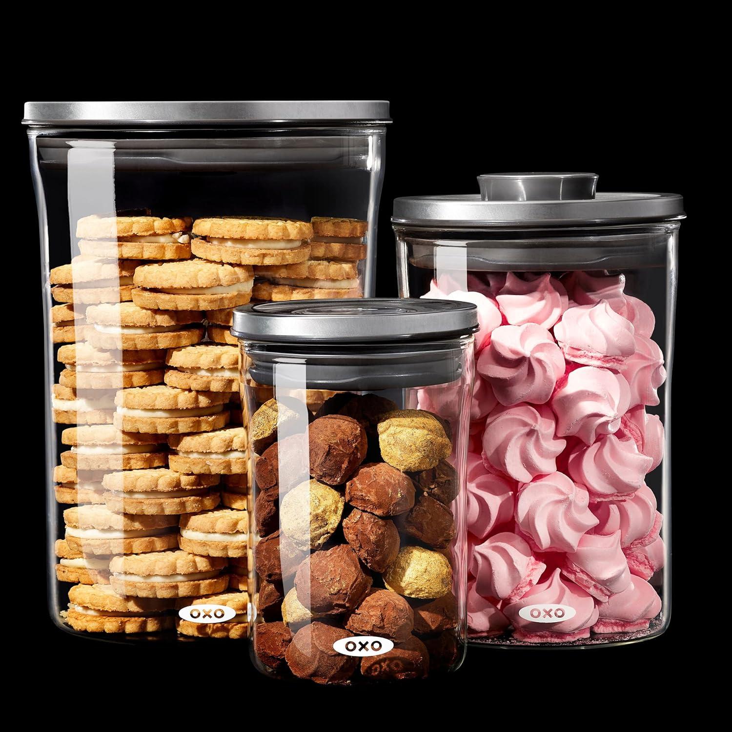 OXO Good Grips Round POP 2.0-3 Piece Graduated Set (1.5, 3.3, 5.2 qt included), White(0.6 qt 1.5 qt 3.3 qt)