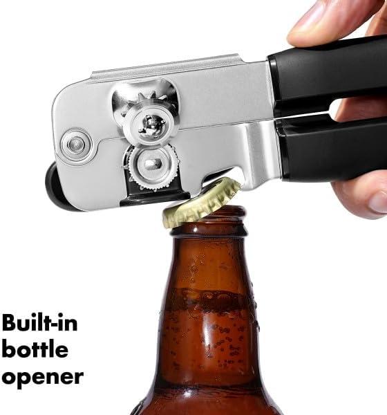 With its large, easy-to-operate turning-mechanism, this can opener does its job with minimal effort on your part. The nonslip, oversize handles fit the hand comfortably, absorbing the tension of keeping the can opener in place while the stainless-steel teeth bite into the lid with the ease of a great white shark. The built-in bottle opener, sturdy construction, and ease of use make the Good Grips can opener one of the best on the market.