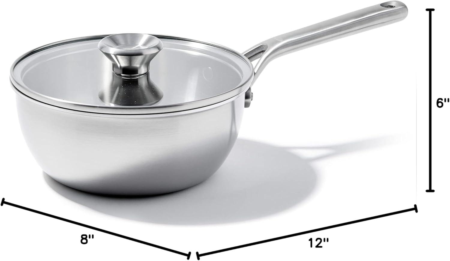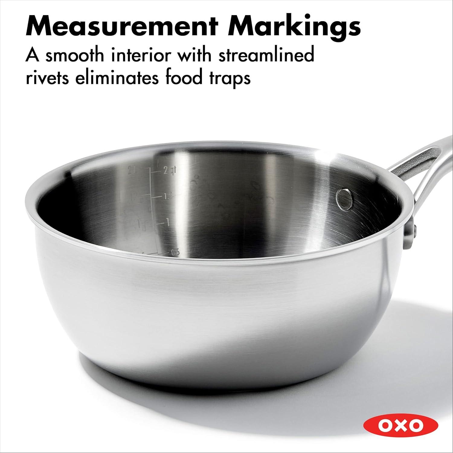 OXO Mira Tri-Ply Stainless Steel, 5QT Stock Pot with Lid, Induction, Multi Clad, Dishwasher and Metal Utensil Safe(3.57QT Chef’s Pan with Lid)