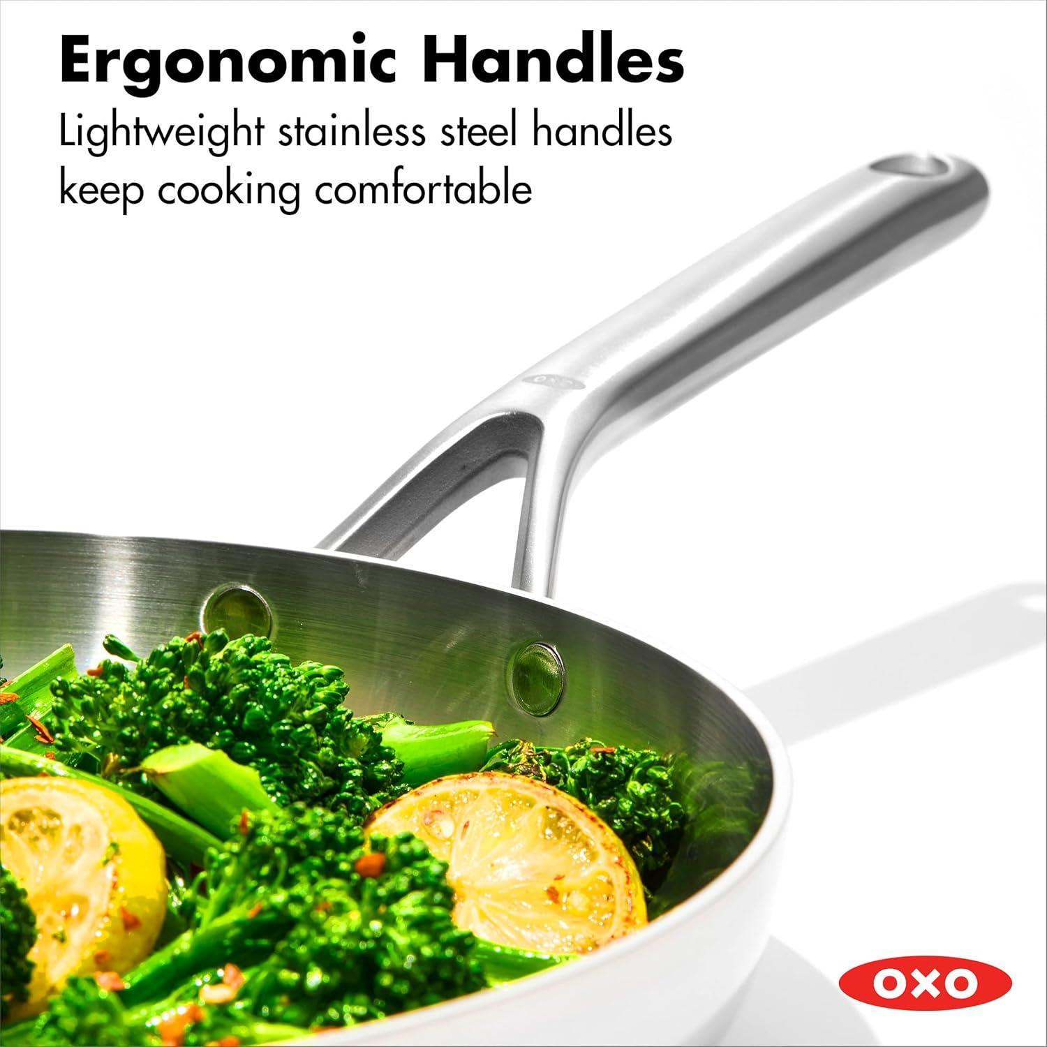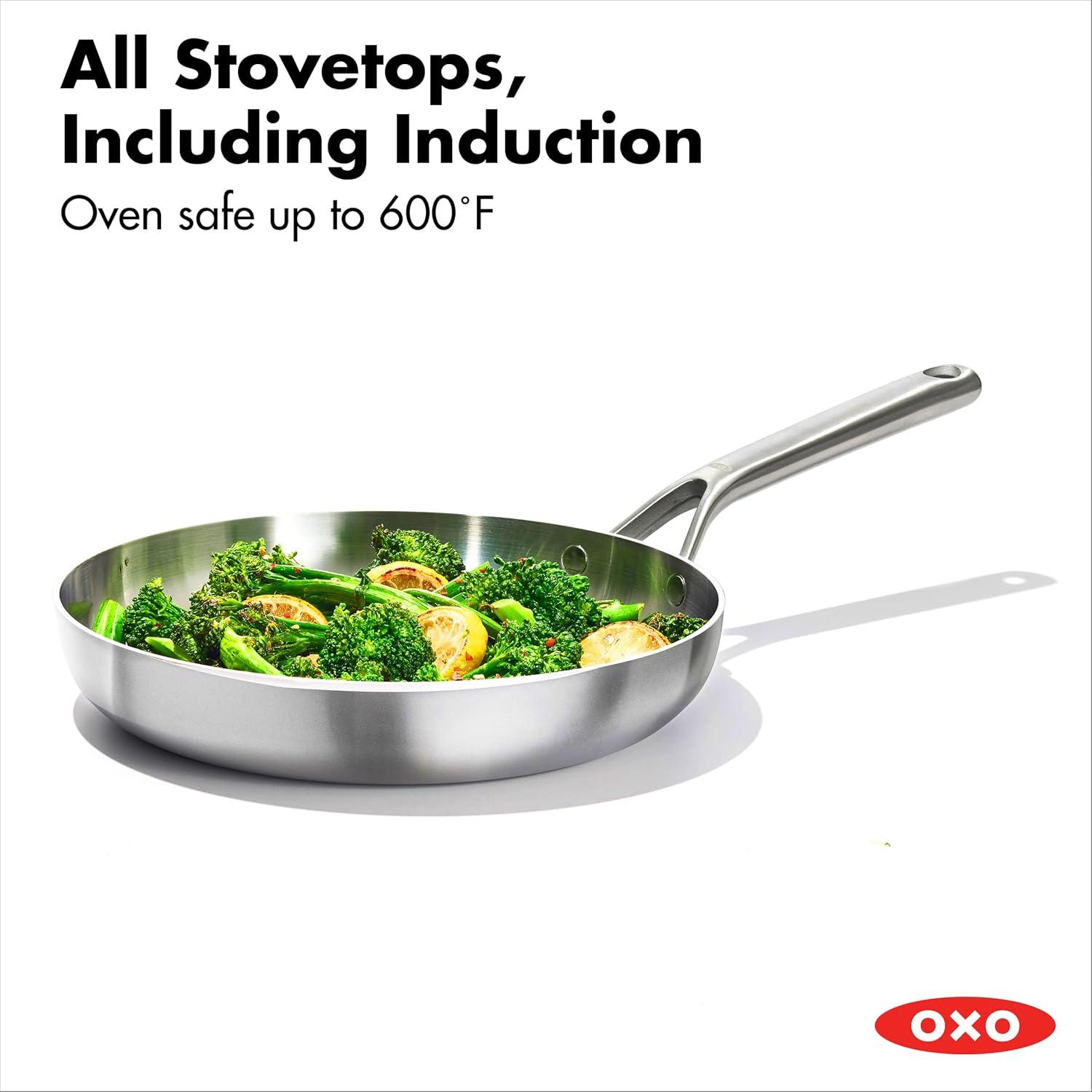 OXO Mira Tri-Ply Stainless Steel, 8″ Frying Pan Skillet, Induction, Multi Clad, Dishwasher and Metal Utensil Safe(10″ Frying Pan Skillet)