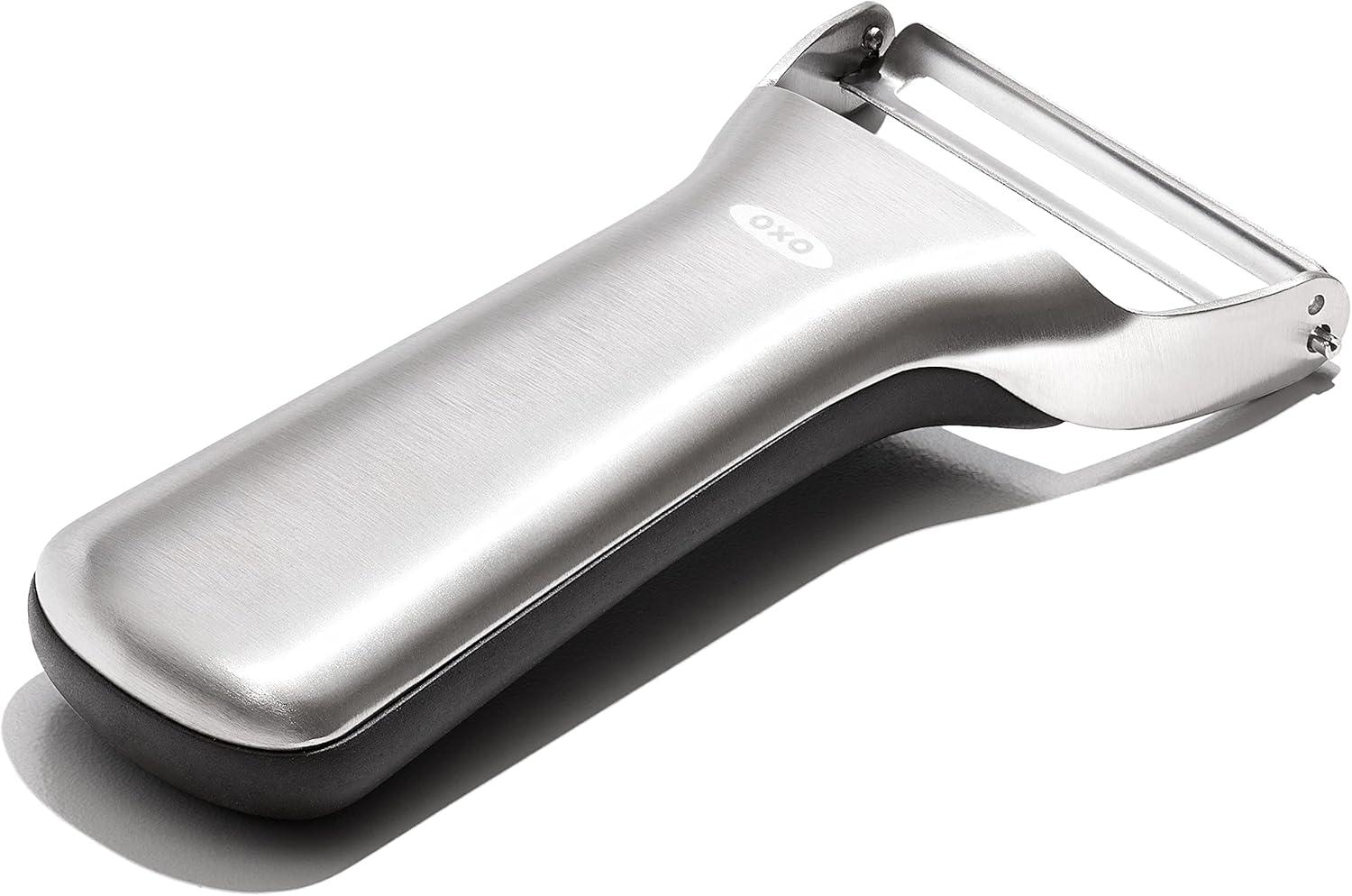 The sleek OXO Steel Prep Y-Peeler makes quick work of those otherwise time-consuming prep tasks. Need to peel pounds of potatoes? This can get through the pile in no time. Making a lasagna with zoodles? Our Y-Peeler can easily glide through zucchini to slice off perfectly thin sheets. Need to prep bunch of carrots? Again, this Peeler is your answer. The sharp stainless steel blade shines when it comes to firm fruits and vegetables, leaving you with perfectly prepped produce. And there's minimal effort required on your end: The blade does all the work, while the contoured handle with non-slip accents ensures you're comfortable (and in control) no matter how much or how little prep work there is get done. Dishwasher safe.
