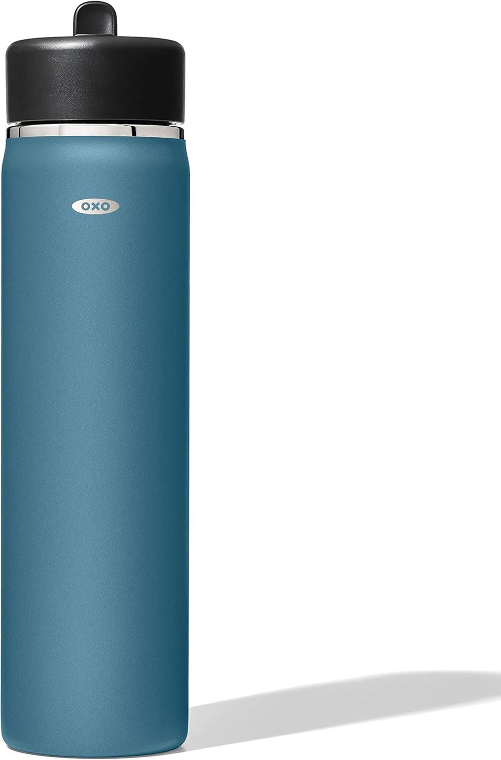 Sip with confidence knowing your drink will still be cold (or hot!) with the OXO Strive 20 oz/590 mL Insulated Wide Mouth Water Bottle with Straw Lid The Insulated Water Bottle is sized to fit most car cup holders and features a non-slip, sweatproof coating for a comfortable grip. The easy-to-clean lid features a removable silicone gasket, and the straw flips open for quick access and snaps closed to help prevent spills. Stainless steel, double-wall vacuum insulation keeps drinks cold for 24 hours or hot for 12 hours. The bottle and lid are dishwasher safe. BPA free.