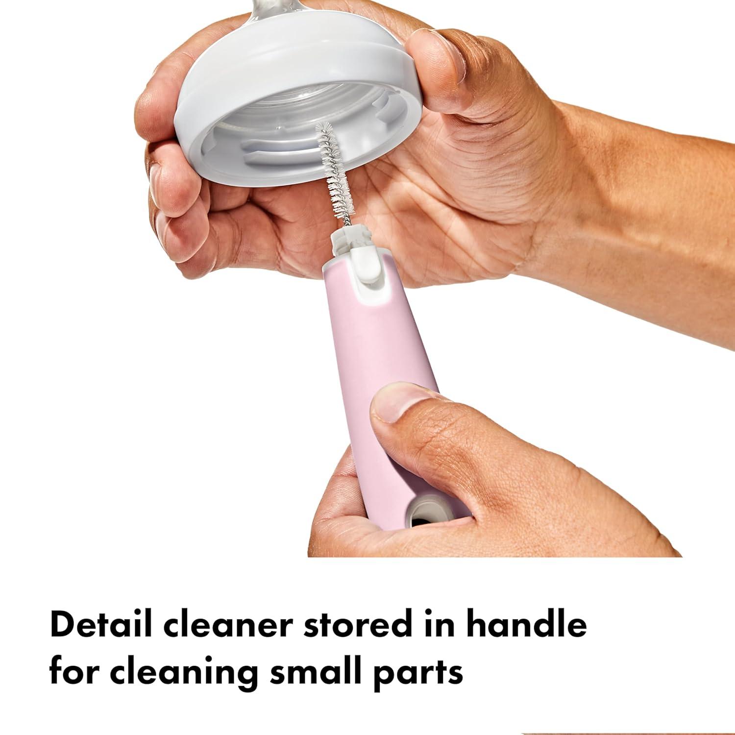 Built-In Detail Cleaner: This baby bottle brush cleaner features a built in detail cleaner, cleverly stowed in the handle. It flexes into tight spots on bottle nipples. Ventilation holes help the detail cleaner dry quickly