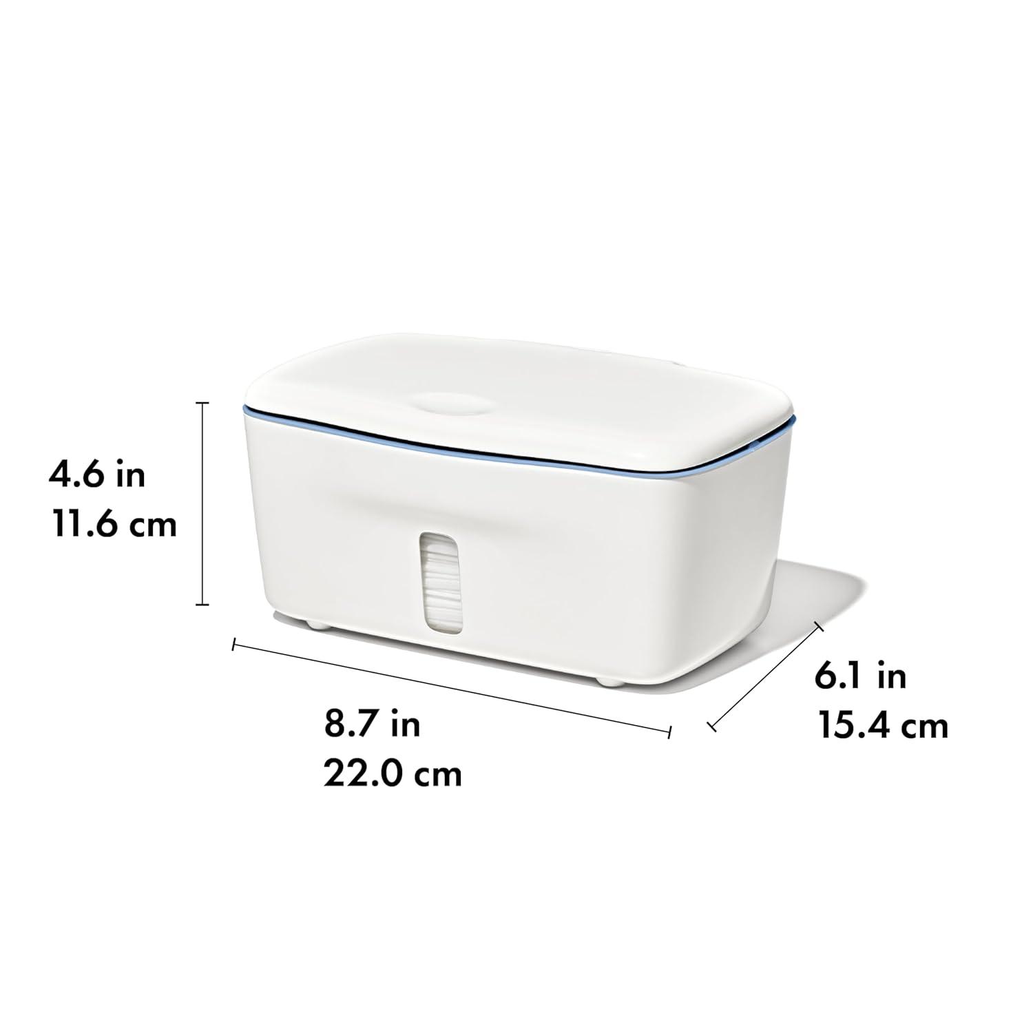 The OXO Tot Perfect Pull Wipes dispenser is a changing table essential. This wipes dispenser is designed so you can easily grab one wipe at a time while you've got one hand on baby. The one-handed design eases fussy diaper changes. Easily keep one hand on wriggly tots while using the other to grab a wipe with the Perfect Pull Wipes Dispenser. The weighted plate inside this wipes container allows for dispensing one wipe at a time and keeps the next wipe ready, upright and waiting. This OXO Wipe Dispenser keeps wipes moist and fresh – designed with a silicone gasket in the lid to keep up to 100 baby wipes moist and fresh in your nursery, in your bathroom, wherever you keep your wet wipes dispenser. This refillable wipes container has been designed with a clear indicator window in front, so you know when it's time for a refill. And the nonslip feet and weighted plate keep this baby wipes container in place. This product is made without BPA, PVC, or phthalates. Each OXO Tot product is tested in real homes with real parents and children (including our own!) to ensure that we provide only the best-designed products possible. We proudly use these products daily and it is our sincere hope that they exceed your expectations.